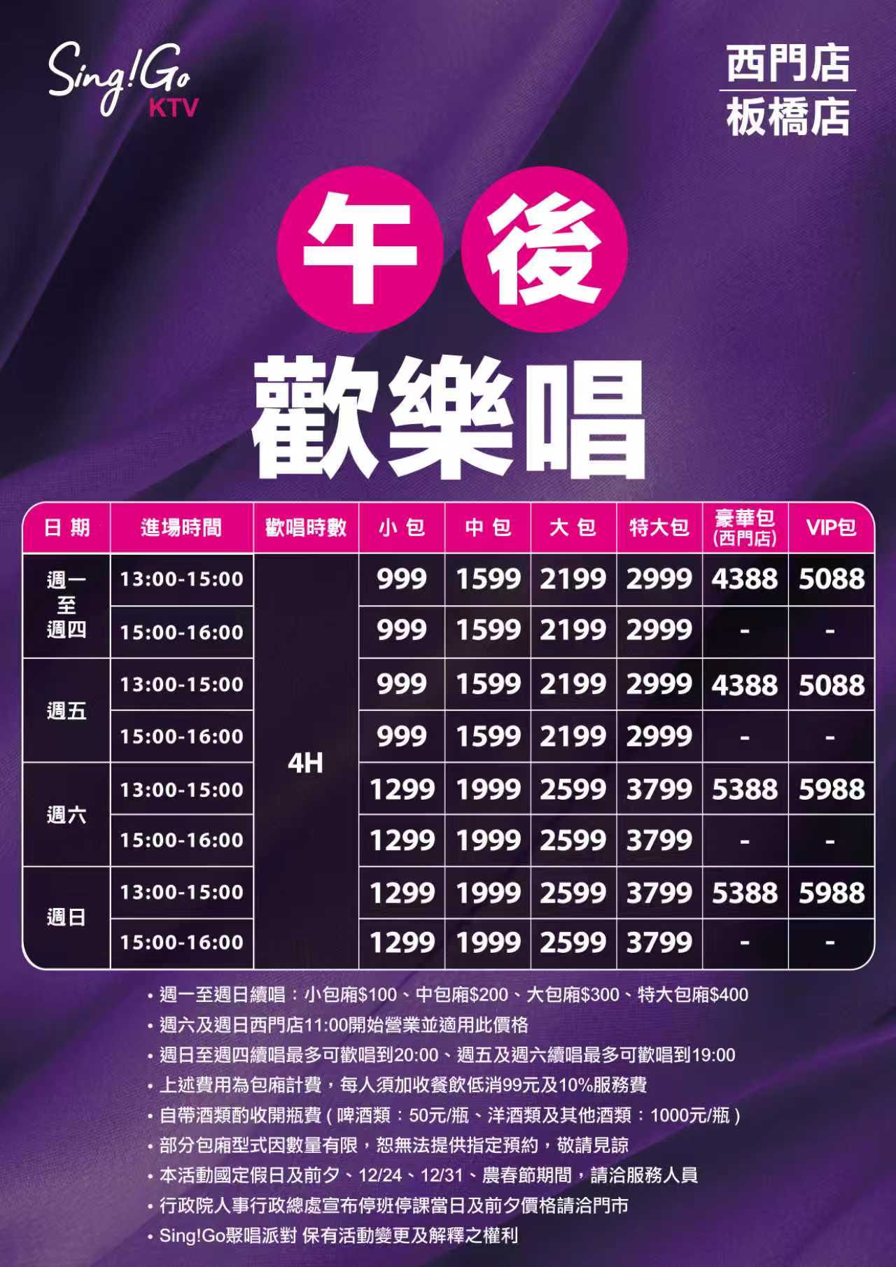 午後優惠/學生優惠/夜間優惠/套餐優惠