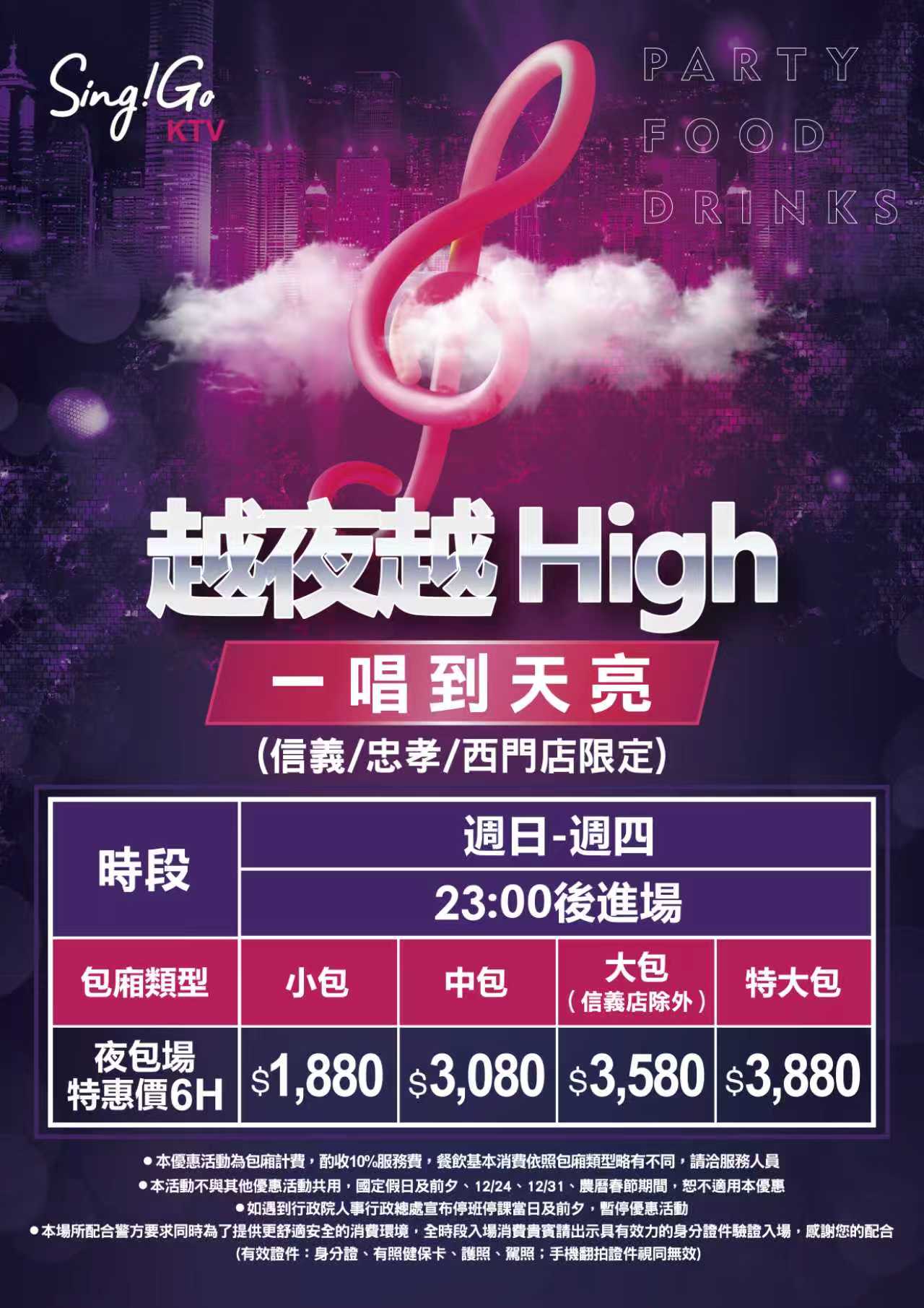 23:00前 價格為3小時